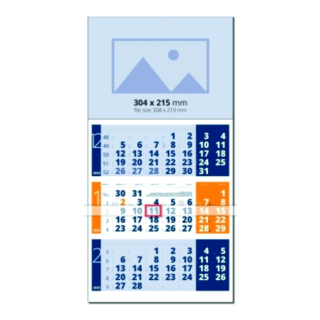 Работни календари са с размер – 705х304 мм (692×304 мм при печат на цяло тяло)
