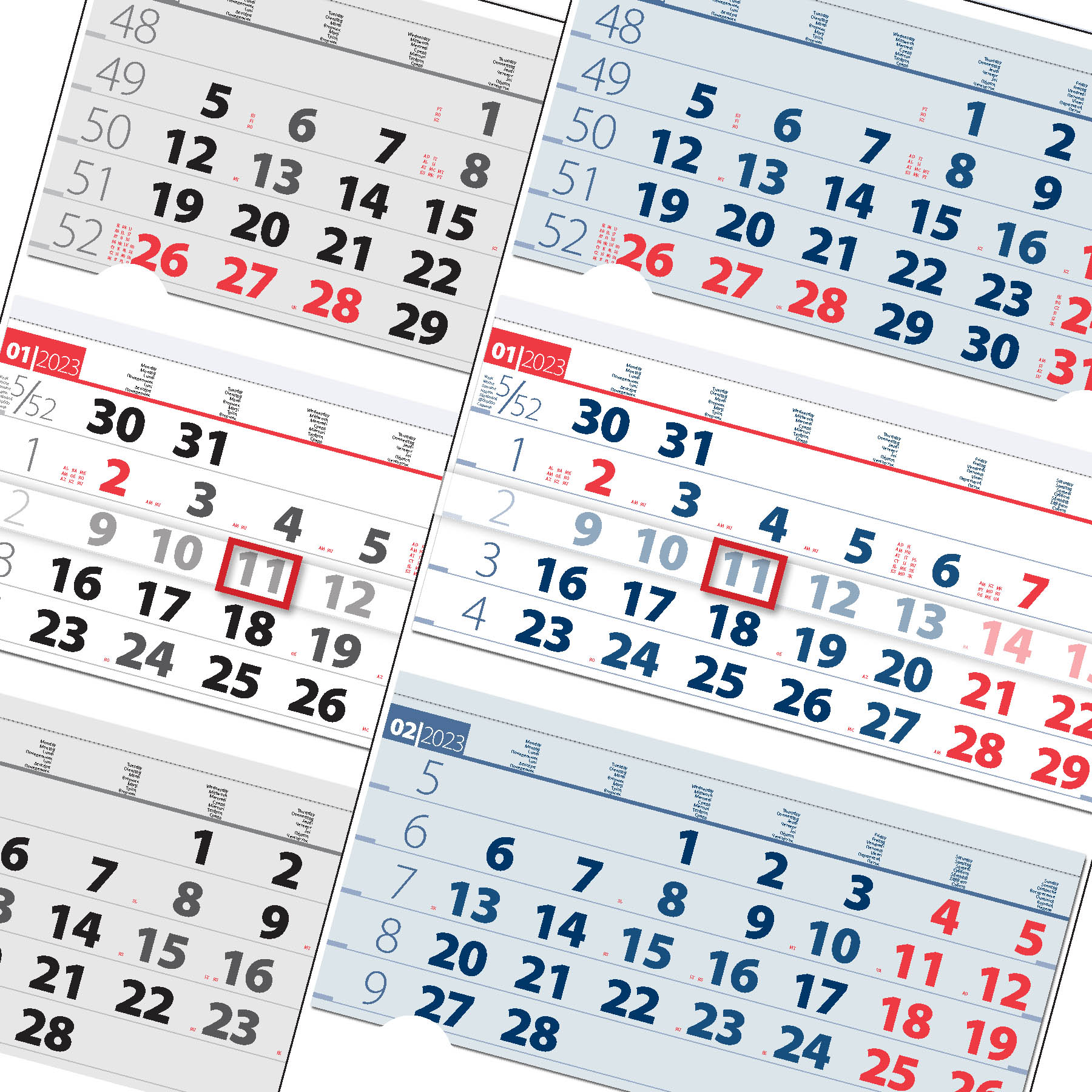 4. Работни календари Класик са на три езика (български, английски и немски)