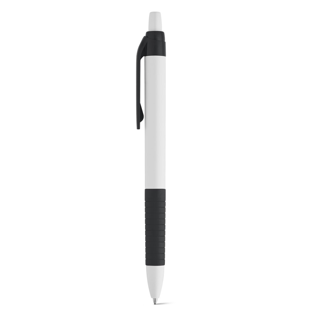 Ball pen with clip and coloured non-slip grip. Blue ink