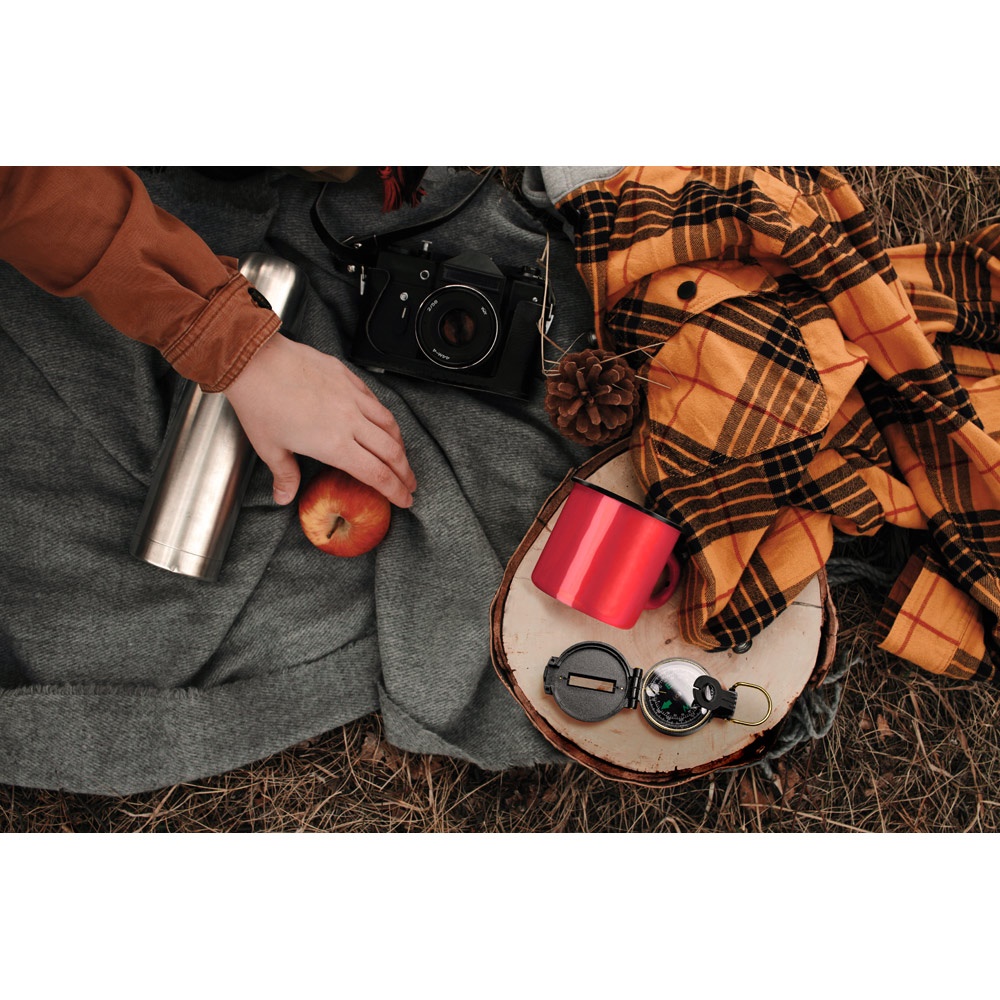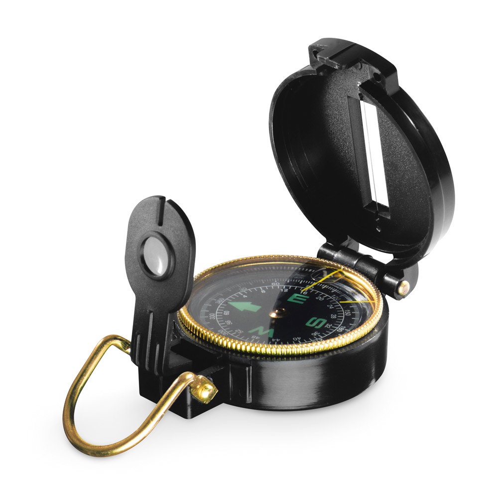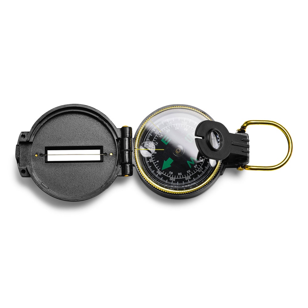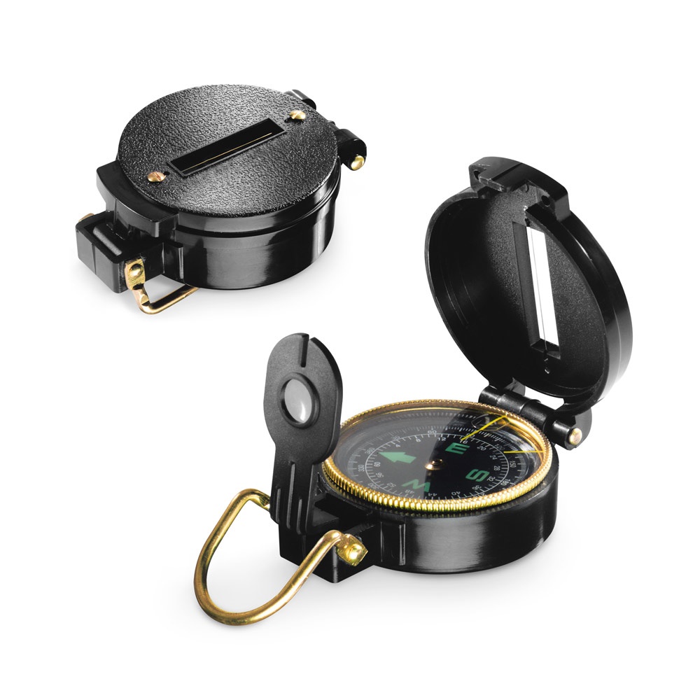 ABS compass with observation slot on the lid and magnifying glass. Gold details